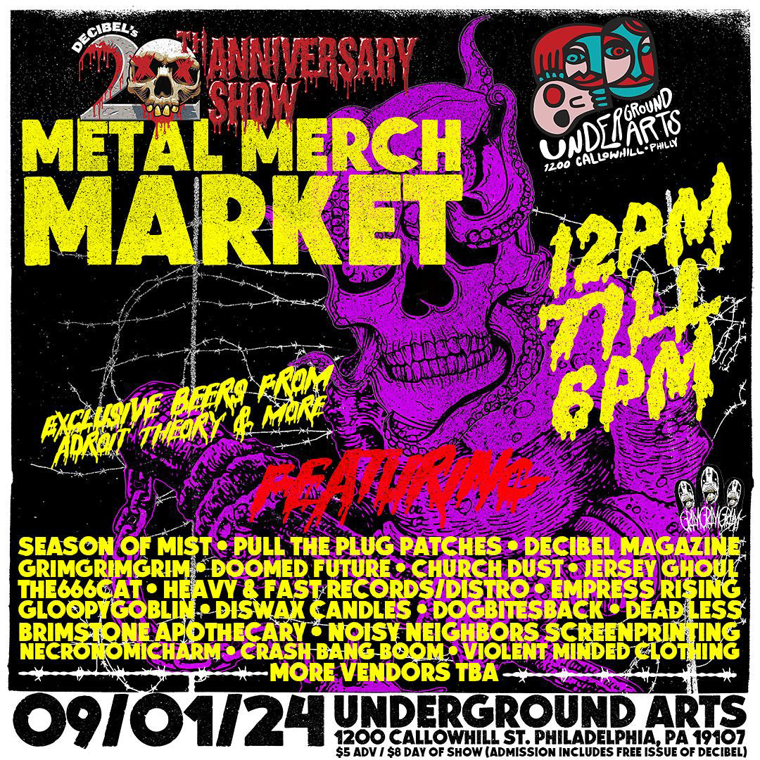 Sun Sept 1 from 12-6PM - Decibel is hosting a Metal Market as a part of their 20th year celebration. The Metal Market at Underground Arts in Philly, curated by the one and only@grimgrimgrim215, is STACKED with high quality vendors & artists from the area. Heavy and Fast will be setup with a special metal selection of wax, tapes and CDs.