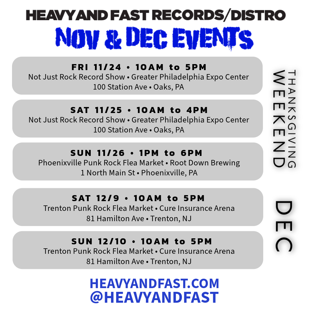 Heavy and Fast will have over 1000 new & used records, tapes, CDs, zines, posters for sale at these 2023 events.