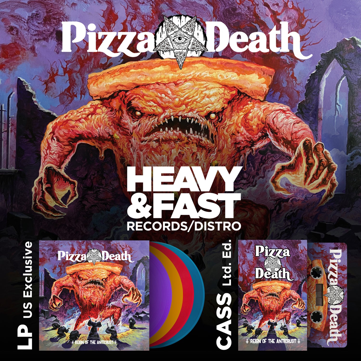 Pizza Death's sophomore album, "Reign of the Anticrust" is now exclusively available on vinyl and cassette through Heavy and Fast Records/Distro in the United States.